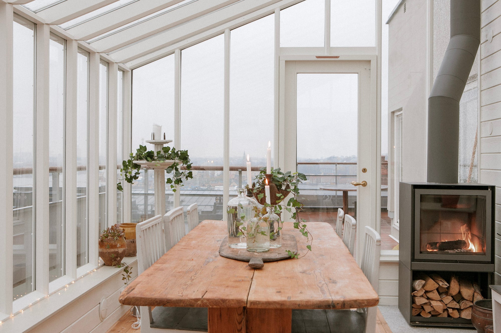 På en altan vid Stockholms inlopp så har Sweden Green House ritat detta orangeri. Då orangeriet har isolerglas så kan det nyttjas sommar som vinter för härliga middagar. Orangeriet har byggs som en förlängning av huset och blivit favoritplatsen för middagar året om.