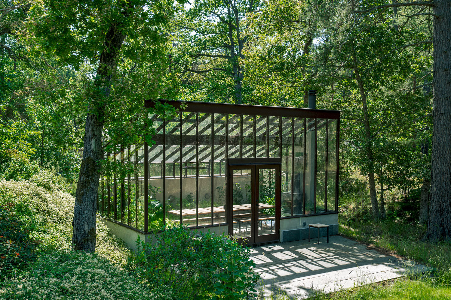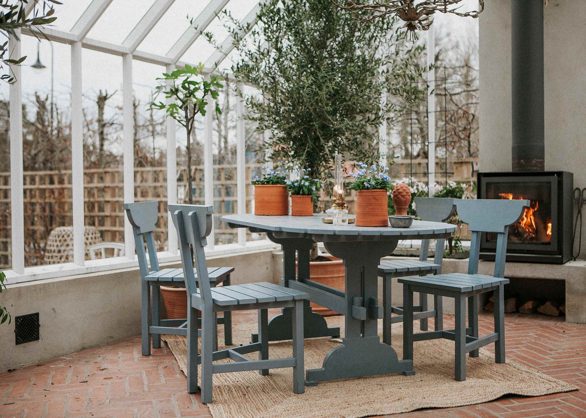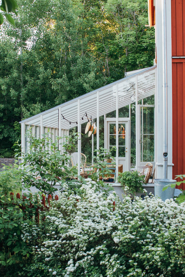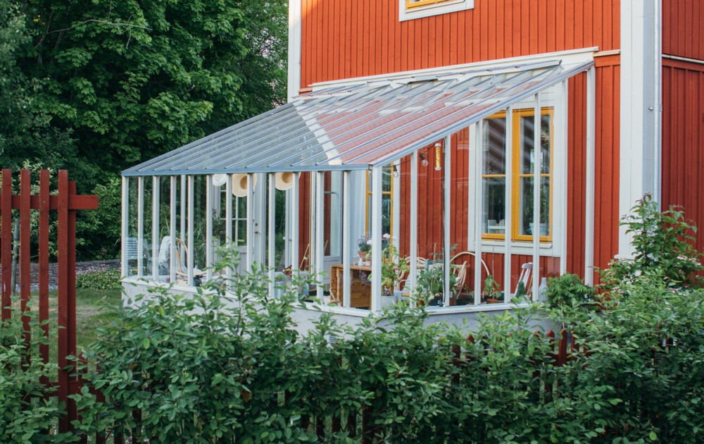 Sållister bruges altid på vægpartierne, når der er isoleringsglas. Det giver et lidt mere industrielt og moderne udtryk, som også kan passe fint i visse miljøer. Indvendigt bevarer drivhuset dog sin særlige følelse af træ og varme.