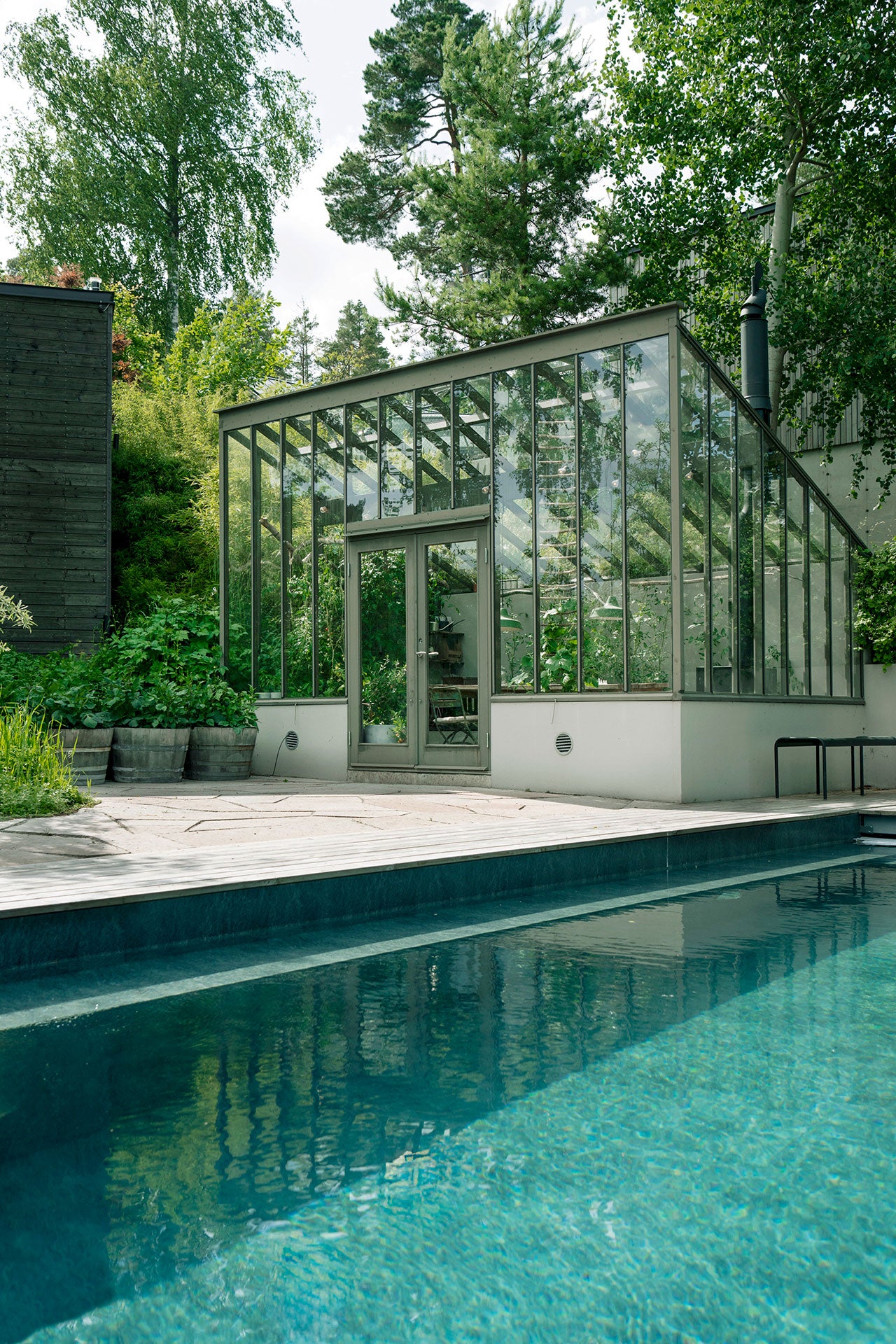 Væg- og tagreglerne har en blød profil, som både fremmer vandafstrømning og slipper meget lys ind. Alle møder mellem drivhusets forskellige dele er præcise og giver minimal mulighed for, at fugt kan stå stille og påvirke træet.