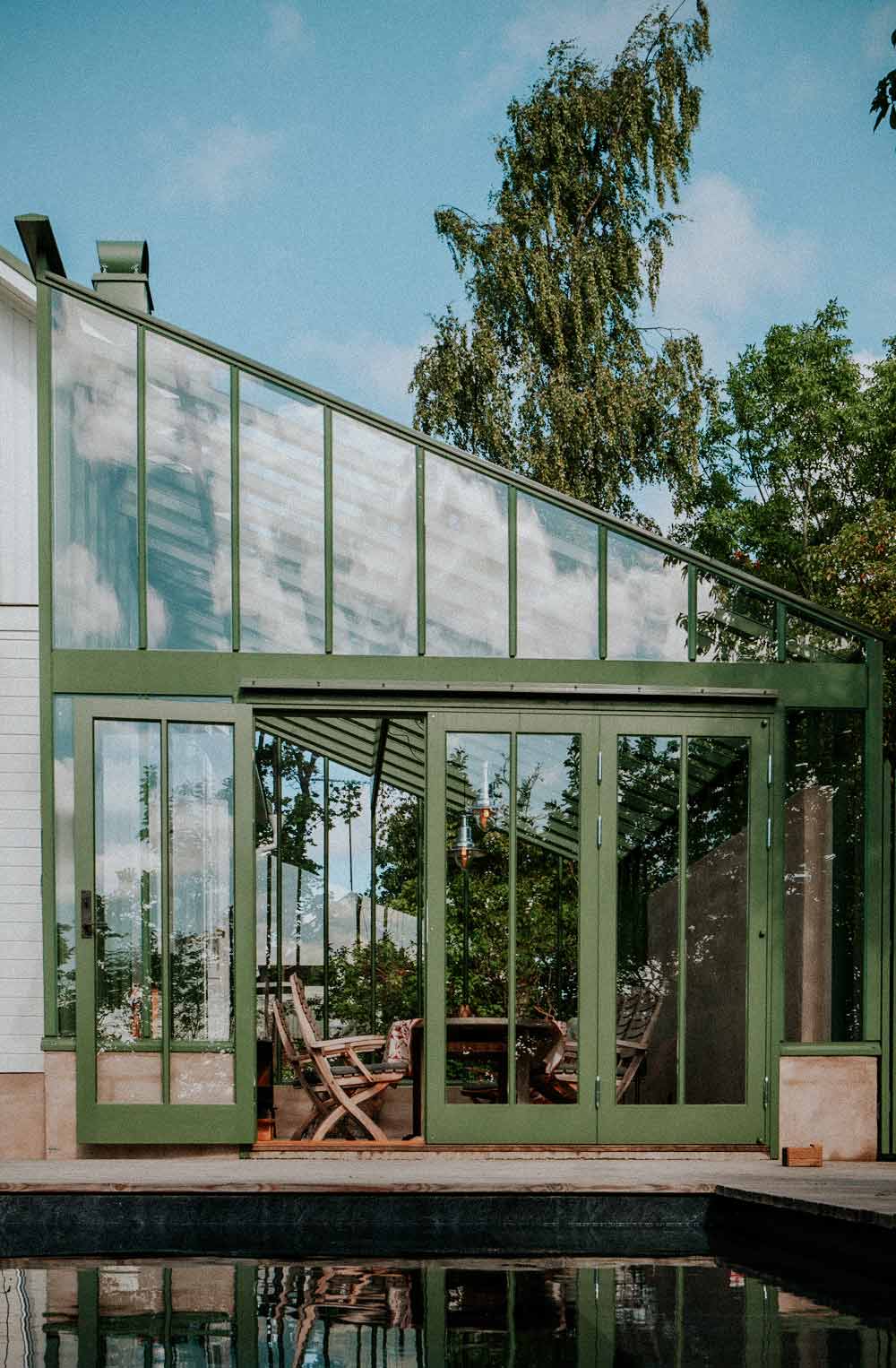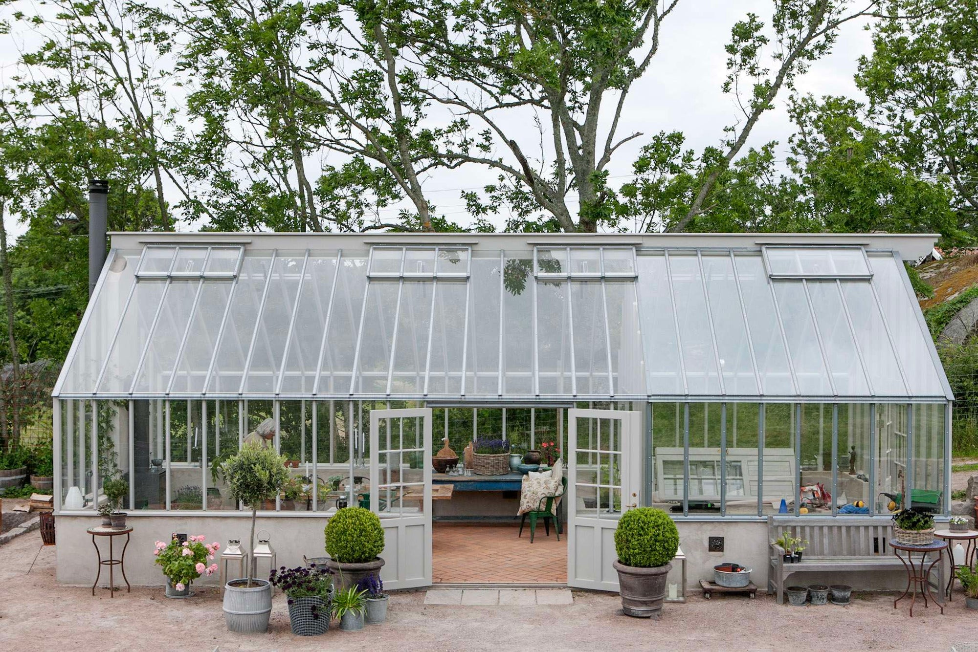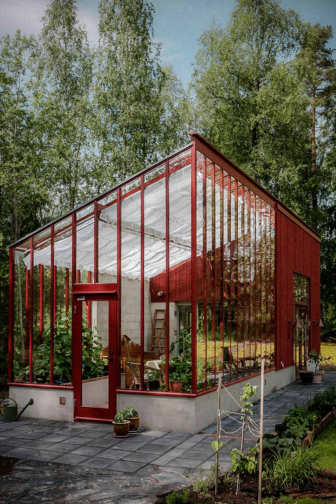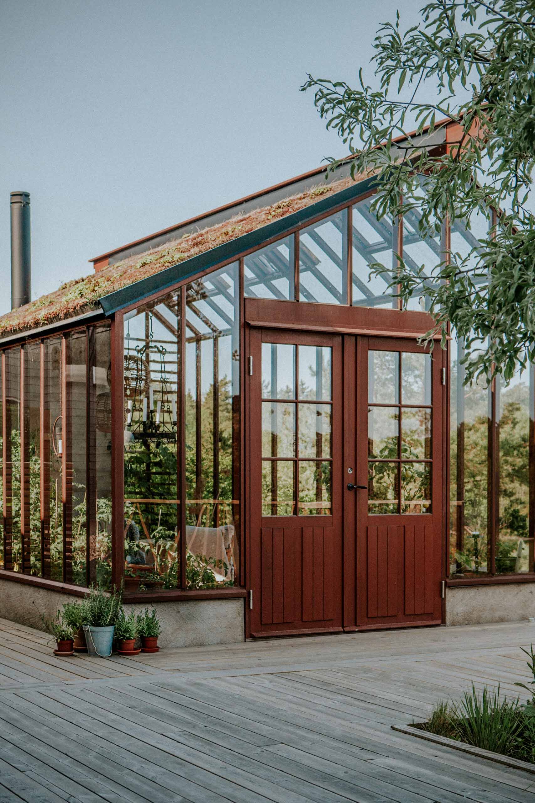 Det brukes alltid terskellister på veggpartiene når det er isolerglass. Det gir et litt mer industrielt og moderne uttrykk, som også kan passe fint i enkelte miljøer. Innvendig beholder drivhuset imidlertid sin spesielle følelse av tre og varme.